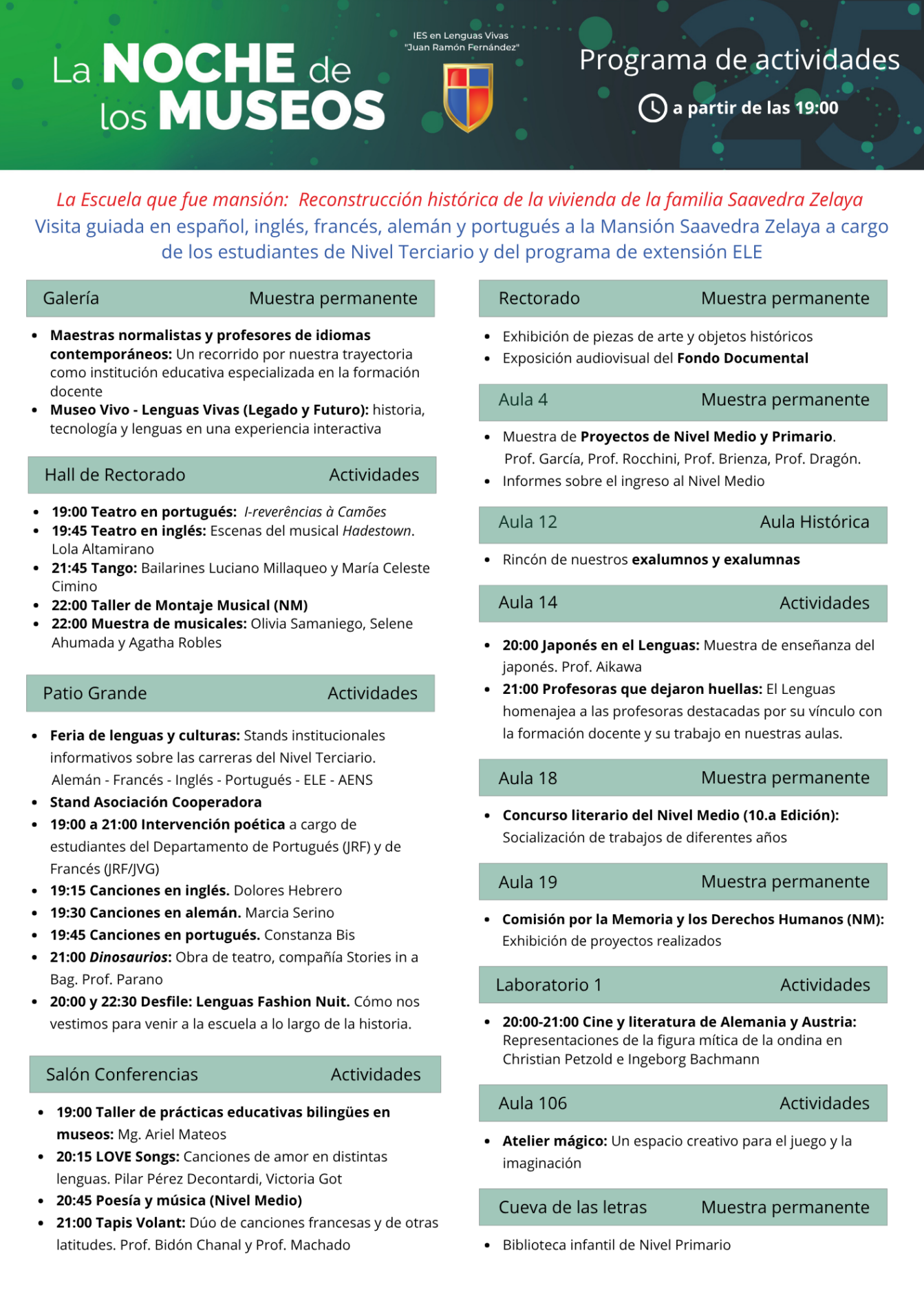 ¡Se viene la Noche de los Museos en el Lenguas! Vení a conocer la Escuela que fue mansión y a compartir una noche mágica llena de actividades donde las lenguas extranjeras, la formación docente y la interculturalidad son protagonistas.